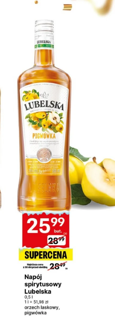 Napój spirytusowy Lubelska 0,5 l 1 l = 51,98 zł orzech laskowy, pigwówka