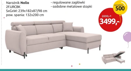 Narożnik Nolio 2F.URCBK SxGxW: 239x182x87/98 cm pow. spania: 132x200 cm - regulowane zagłówki - ozdobne metalowe stopki