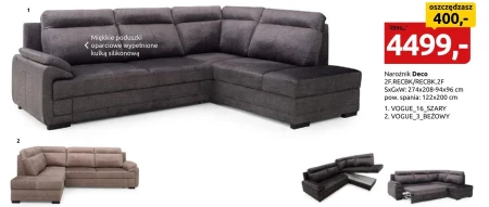 Narożnik Deco 2F.RECBK/RECBK.2F SxGxW: 274x208-94x96 cm pow. spania: 122x200 cm 1. VOGUE_16_SZARY 2. VOGUE 3 BEŻOWY