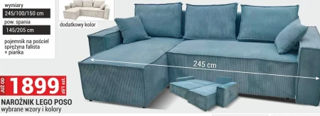 NARÓŻNIK LEGO POSO wybrane wzory i kolory wymiary 245/100/150 cm pow. spania 145/205 cm pojemnik na pościel sprężyna falista + pianka