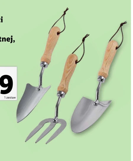 Zestaw narzędzi ogrodowych ze stali.