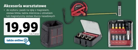 Akcesoria warsztatowe do wyboru: pasek na rękę z magnesem, zestaw bitów, taśma miernicza z ołówkiem lub magnetyczny zestaw kluczy nasadowych 1 zestaw także online .