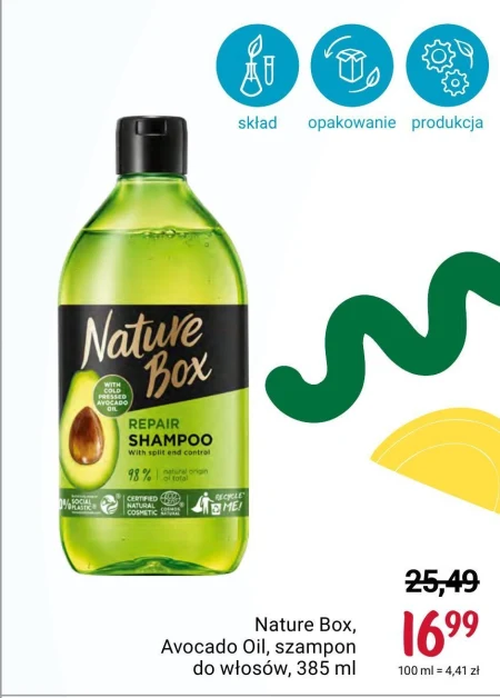 Nature Box Avocado Oil Regenerujący szampon do włosów zniszczonych z olejem z awokado 385 ml - Oferta archiwalna