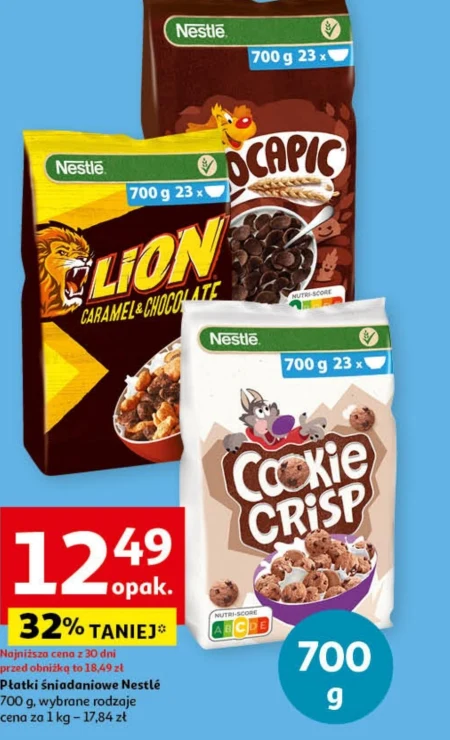 Nestlé XXL Cookie Crisp Zbożowe płatki w kształcie ciasteczek o smaku czekoladowym 700 g - Oferta archiwalna