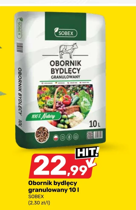 Obornik bydlęcy granulowany 10 l marki SOBEX dostępny jest w ofercie Bricomarche w cenie 22,99 zł, co daje 2,30 zł za litr. Produkt ten to wysokiej jakości nawóz organiczny, idealny do poprawy struktury gleby i dostarczenia niezbędnych składników odżywczych dla roślin. Granulowana forma obornika ułatwia jego aplikację i zapewnia równomierne rozprowadzenie składników w glebie. Jest to szczególnie ważne w uprawach ogrodniczych i rolniczych, gdzie dbałość o żyzność gleby przekłada się na obfite plony i zdrowy wzrost roślin. Warto wykorzystać tę okazję i zadbać o kondycję swojego ogrodu lub upraw. Oferta ważna od 2026-04-08 do 2026-04-18 Źródło: gazetka BricomarcheWłącz powiadomienia o ulubionych produktach:
