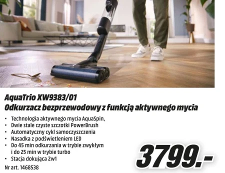 Technologia aktywnego mycia AquaSpin; Dwie stale czyste szczotki PowerBrush; Automatyczny cykl samoczyszczenia; Nasadka z podświetleniem LED Do 45 min odkurzania w trybie zwykłym i do 25 min w trybie turbo; Stacja dokująca 2w1.