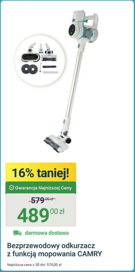 Bezprzewodowy odkurzacz z funkcją mopowania występuje w ofercie ERLI w cenie 489,00 zł, obniżonej o 16% z poprzednich 579,00 zł, z darmową dostawą. To wygodne urządzenie 2 w 1 pozwala zarówno odkurzyć, jak i umyć podłogi, oszczędzając czas i miejsce. Dzięki bezprzewodowej konstrukcji sprzątanie staje się jeszcze bardziej komfortowe i swobodne, idealne do codziennego użytku w każdym domu. Skorzystaj z gwarancji najniższej ceny i zadbaj o czystość swojego otoczenia bez zbędnych wydatków.