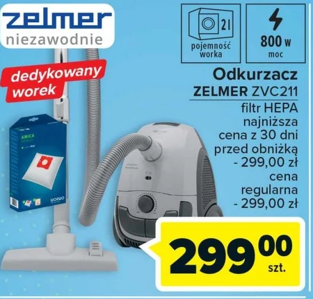 Odkurzacz ZELMER ZVC211 filtr HEPA najniższa cena z 30 dni przed obniżką - 299,00 zł.