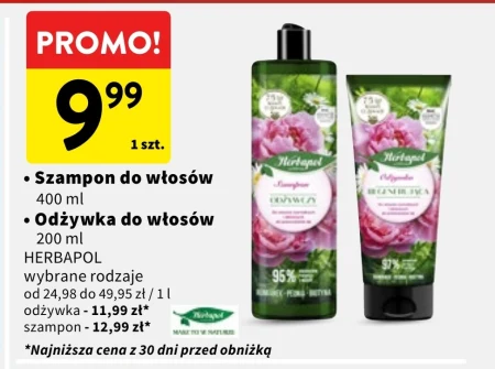 · Szampon do włosów 400 ml · Odżywka do włosów 200 ml HERBAPOL wybrane rodzaje od 24,98 do 49,95 zł / 1 l odżywka - 11,99 zł* szampon - 12,99 zł*