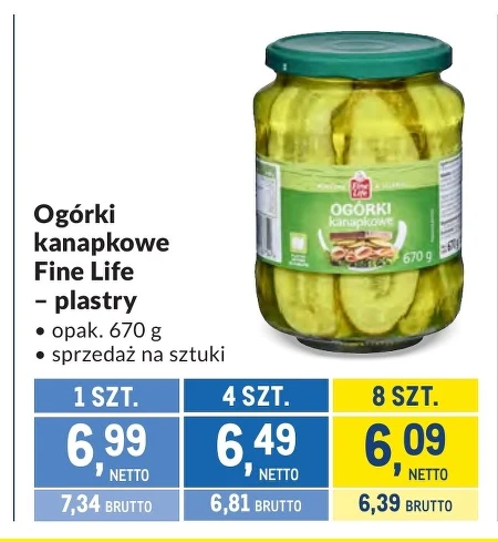 Ogórki kanapkowe Fine Life - plastry · opak. 670 g · sprzedaż na sztuki