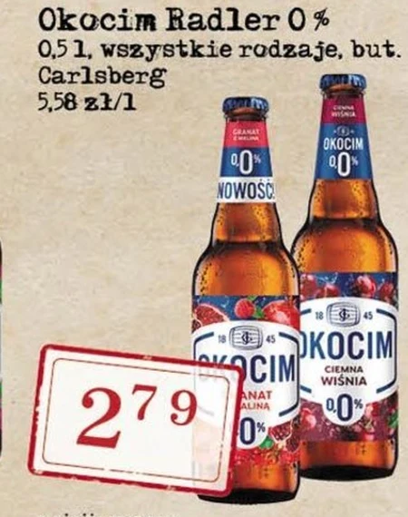 Okocim Radler 0% 0,5 l, wszystkie rodzaje, but. Carlsberg 5,58 21/1