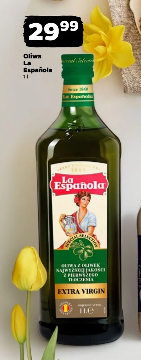 Oliwa La Española 1l Oliwa La Española w butelce litrowej to klasyczny składnik kuchni śródziemnomorskiej, idealna do smażenia, sałatek i marynat. Charakteryzuje się bogatym smakiem i aromatem, który wzbogaci każde danie. Znajduje się w ofercie Netto, co pozwala zaopatrzyć się w wysokiej jakości produkt w atrakcyjnej cenie. Warto mieć ją w zapasach, by zawsze mieć pod ręką bazę do wielu kulinarnych eksperymentów.