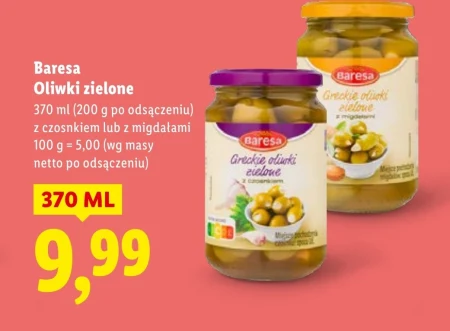 Baresa Oliwki zielone 370 ml (200 g po odsączeniu) z czosnkiem lub z migdałami 100 g = 5,00 (wg masy netto po odsączeniu)