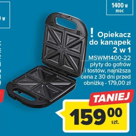 Opiekacz do kanapek 2w1 MSWM1400-22 płyty do gofrow i tostów, najniższa cena z 30 dni przed obniżką - 179,00 zł