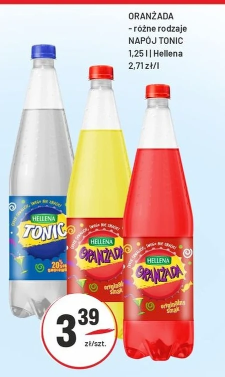 ORANŻADA - różne rodzaje NAPOJ TONIC 1,25 l Helena 2,71 zł/l