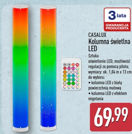 CASALUX Kolumna świetlna LED Sztuka oświetlenie LED; możliwość regulacji za pomocą pilota; wymiary: ok. 1,04 m x 13 cm do wyboru: · kolumna LED z białą powierzchnią matową · kolumna LED z efektem migotania