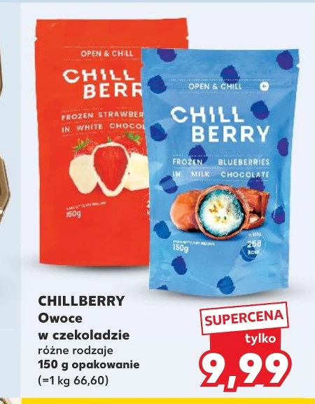 CHILLBERRY owoce w czekoladzie różnych rodzajów dostępne są w ofercie Kaufland w cenie 9,99 za opakowanie 150 g (czyli 66,60 za kilogram). To słodka przekąska idealna na chwilę relaksu, czy jako dodatek do deseru. Smakowite owoce oblane wykwintną czekoladą to połączenie, które zadowoli każdego miłośnika słodkości. Warto skorzystać z okazji i spróbować tej wyjątkowej kompozycji smaków.