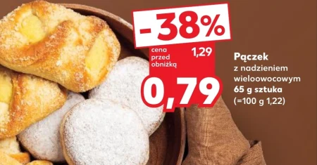 Pączek z nadzieniem wielowocowym, o wadze 65 gramów, jest aktualnie dostępny w ofercie Kaufland w cenie 0,79, po obniżce z 1,29, co stanowi zniżkę -38%. Ten słodki wypiek idealnie sprawdzi się jako przekąska do kawy, szybkie śniadanie czy małe co nieco dla łasucha. W środku znajdziemy aromatyczne, owocowe nadzienie, które z pewnością umili każdą chwilę. Warto skorzystać z tej okazji, aby spróbować tego pysznego pączka w obniżonej cenie. Oferta ważna od 2026-04-09 do 2026-04-22 Źródło: gazetka Kaufland