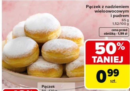 Pączek z nadzieniem wieloowocowym i pudrem 65 g 1,52/100 g