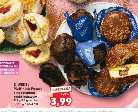 E. WEDEL Muffin lub Pączek z nadzieniem czekoladowym 115 g/85 g sztuka (=100 g 3,47/4,69) 4- 18 02 2026 chyba że na stronach anz