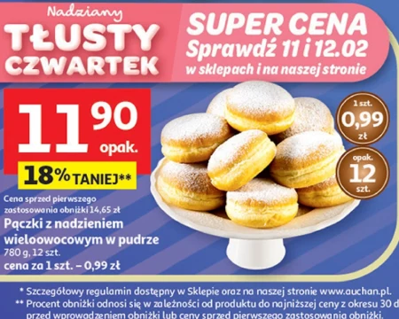 Pączki z nadzieniem wieloowocowym w pudrze 780 g, 12 szt. cena za 1 szt. - 0,99 zł