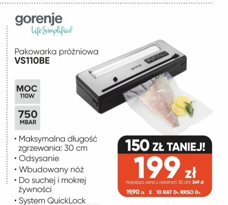 Pakowarka próżniowa VS110BE MOC 110W 750 MBAR • Maksymalna długość zgrzewania: 30 cm • Odsysanie • Wbudowany nóż • Do suchej i mokrej żywności • System QuickLock