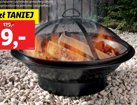 Palenisko ogrodowe ok. 54 x 30 cm (Ø x wys.) z blachy stalowej powlekanej proszkowo odporne na działanie czynników atmosferycznych w zestawie ognioodporna pokrywa i pogrzebacz.