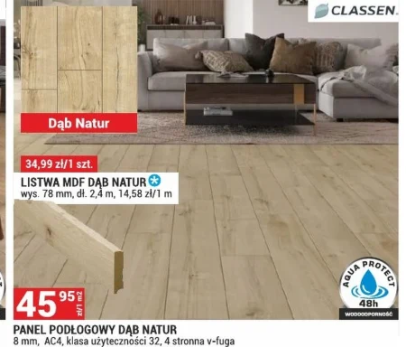 PANEL PODŁOGOWY DĄB NATUR 8 mm, AC4, klasa użyteczności 32, 4 stronna v-fuga