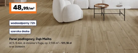 Panel podłogowy, Dąb Melito AC5, 8 mm, 4-stronna V-fuga, op. 2,518 m2 - 123,36 zł nr ref. 25098404 wodoodporny 72h szeroka deska