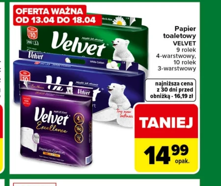 Papier toaletowy VELVET 9 rolek 4-warstwowy, 10 rolek 3-warstwowy