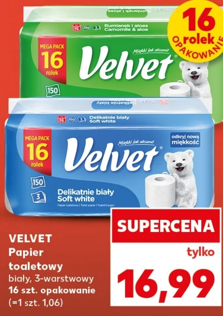 VELVET Papier toaletowy biały, 3-warstwowy 16 szt. opakowanie (=1 szt. 1,06)