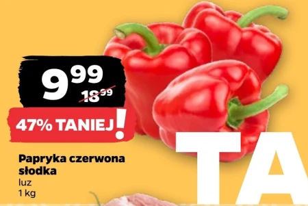 Papryka czerwona słodka, luzem, dostępna w ofercie Netto w cenie 9,99 za kilogram, z obniżki z 18,99, co stanowi aż 47% taniej. To popularne warzywo, idealne do wielu dań – sałatek, zup, gulaszów, farszów, a także jako dodatek do mięs i pizzy. Jest źródłem witaminy C i innych cennych składników odżywczych, dodając koloru i smaku codziennym posiłkom. Warto skorzystać z tej okazji i zaopatrzyć się w świeżą paprykę w atrakcyjnej cenie. Źródło: gazetka Netto