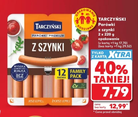 TARCZYŃSKI Parówki z szynki 2 x 220 g opakowanie (z kartą =1 kg 17,70) (bez karty =1 kg 29,52)