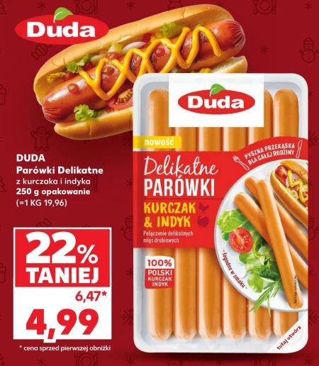 DUDA Parówki Delikatne z kurczaka i indyka 250 g opakowanie (=1 KG 19,96)