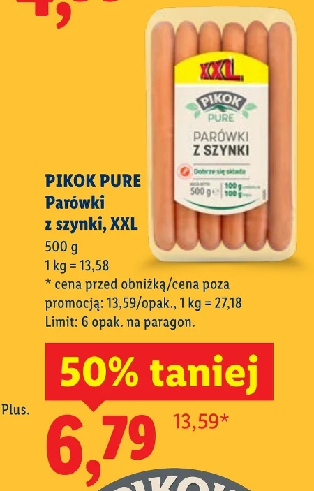 PIKOK PURE Parówki z szynki, XXL 500 g Wyśmienite parówki Pikok Pure XXL z delikatnej szynki to idealny składnik na szybki i smaczny posiłek, szczególnie cenione przez rodziny z dziećmi. Doskonale sprawdzą się zarówno jako samodzielna przekąska, jak i element bardziej rozbudowanego dania, np. zapiekanki czy śniadania, zapewniając wartościowy posiłek bogaty w białko. Wybierz Pikok Pure dla wyjątkowego smaku i jakości, idealne na grilla, obiad lub po prostu do jedzenia na ciepło, stanowiąc podstawę pożywnej diety.