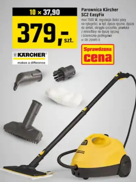 Model SC2 EasyFix. Moc 1500 W. regulacja ilości pary na rękojeści. W komplecie dysza ręczna, dysza do detali, okrągła szczotka, powłoka z mikrofibry na dyszę ręczną i ściereczka podłogowa.