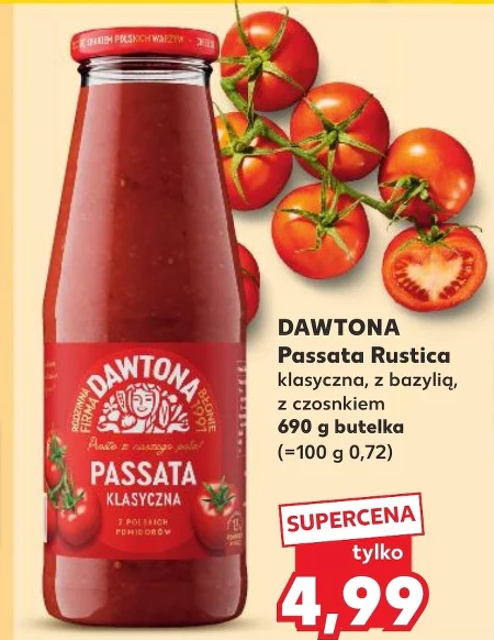 DAWTONA Passata Rustica klasyczna, z bazylią, z czosnkiem 690 g butelka (=100 g 0,72)