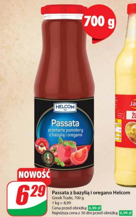 Passata z bazylią i oregano Helcom Greek Trade, 700 g 1 kg = 8,99 Cena przed obniżką: 6,99 zł Najniższa cena z 30 dni przed obniżką: 6,99 zł