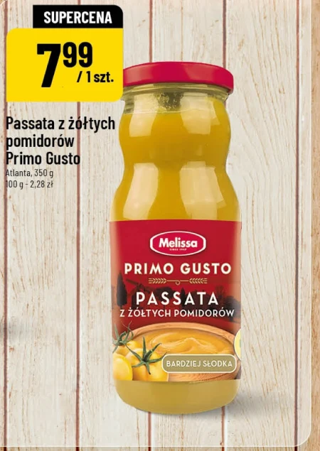 Passata z żółtych pomidorów Primo Gusto Atlanta, 350 g 00 g - 2,28 zł Passata z żółtych pomidorów to doskonała baza do przygotowania aromatycznych sosów, które wzbogacą każde danie. Dzięki intensywnemu smakowi i naturalnym składnikom, idealnie nadaje się także do zup, zapiekanek oraz jako sos do makaronów.