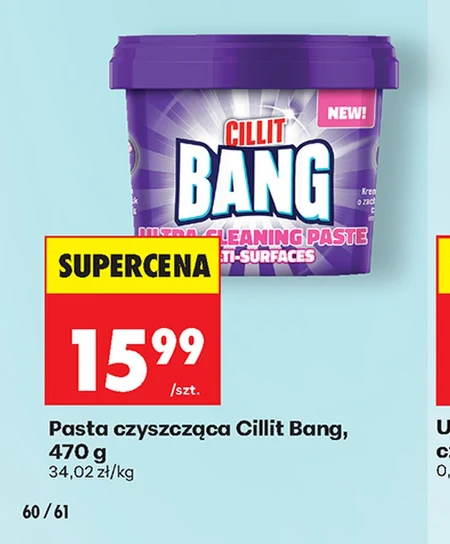 Pasta czyszcząca Cillit Bang jest dostępna w ofercie Biedronka w cenie 15,99 zł za sztukę, przy wadze 470 g i cenie 34,02 zł za kilogram. Produkt przeznaczony jest do skutecznego czyszczenia różnych powierzchni w domu, takich jak płytki, armatura łazienkowa, kuchenki czy blaty. Dzięki swojej formule pozwala na usunięcie uporczywych zabrudzeń, tłuszczu i osadów. To doskonała okazja, aby zaopatrzyć się w sprawdzony środek czyszczący w atrakcyjnej cenie i cieszyć się czystością w swoim domu. Oferta ważna od 2026-04-29 do 2026-05-06 Źródło: gazetka Biedronka