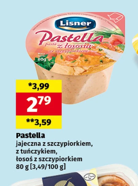 Pastella jajeczna z szczypiorkiem, z tuńczykiem oraz łosoś z szczypiorkiem dostępna jest w ofercie PSS Rzeszow w cenie 3,59 za opakowanie o gramaturze 80 g, co daje 3,49 za 100 g. Gotowe pasty Pastella to szybki i smaczny sposób na urozmaicenie codziennych posiłków – idealnie sprawdzą się na śniadanie, jako dodatek do kanapek czy przekąska. Różnorodność smaków pozwoli każdemu znaleźć coś dla siebie, a poręczne opakowanie ułatwi przechowywanie. Warto skorzystać z tej okazji, aby za niewielkie pieniądze cieszyć się pysznym i wygodnym produktem. Oferta ważna od 2026-03-17 do 2026-04-04 Źródło: gazetka PSS Rzeszow