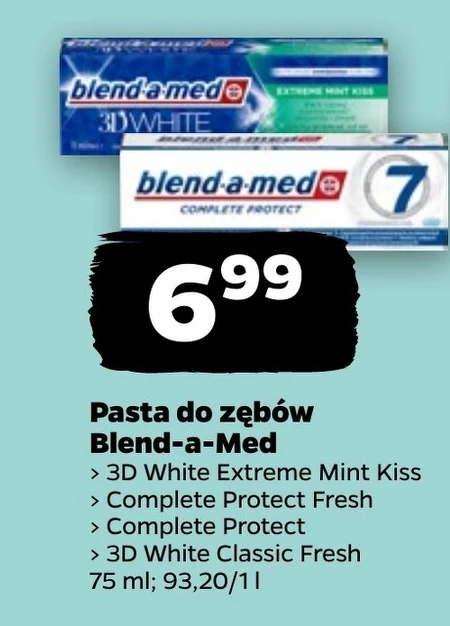 Pasta do zębów Blend-a-Med > 3D White Extreme Mint Kiss > Complete Protect Fresh > Complete Protect > 3D White Classic Fresh 75 ml; 93,20/1l