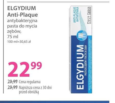 Pasta do zębów Elgydium Anti-Plaque antybakteryjna w Hebe kosztuje teraz 22,99 zł zamiast 29,99 zł. Opakowanie zawiera 75 ml pasty, co daje cenę 30,65 zł za 100 ml. Produkt skutecznie usuwa płytkę nazębną i pomaga w codziennej higienie jamy ustnej. Promocja w Hebe obowiązuje do wyczerpania zapasów lub do odwołania.