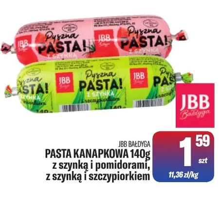 JBB BAŁDYGA PASTA KANAPKOWA 140g z szynką i pomidorami, z szynką i szczypiorkiem