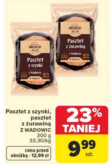 Pasztet z szynki, pasztet z żurawiną Z WADOWIC 300 g 33,30/kg