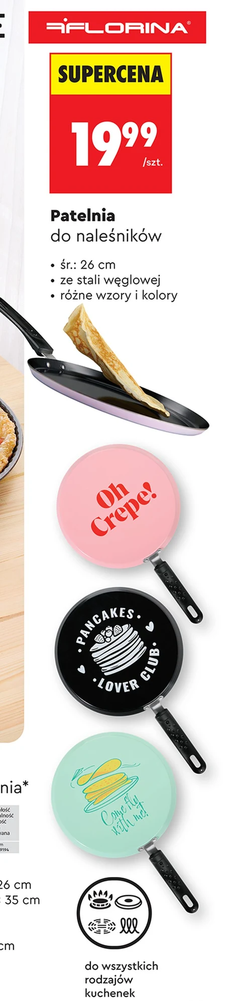 Patelnia do naleśników: śr.: 26 cm, ze stali węglowej, różne wzory i kolory