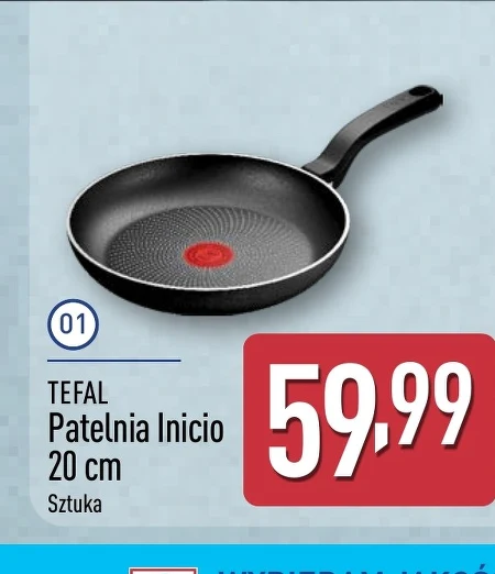 Patelnia Tefal Inicio o średnicy 20 cm jest dostępna w promocji w sieci Aldi za 59,99 zł. To solidny model z powłoką nieprzywierającą, który sprawdzi się zarówno do smażenia jajek, jak i przygotowywania bardziej wymagających potraw. Wykonana z trwałych materiałów, zapewnia równomierne rozprowadzanie ciepła i łatwe czyszczenie. Warto skorzystać z okazji, zwłaszcza jeśli potrzebujesz niezawodnego naczynia do codziennego użytku. Oferta ważna od 2026-04-22 do 2026-04-25 Źródło: gazetka Aldi