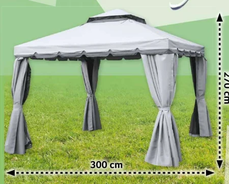 Pawilon ogrodowy Capri, szerokość 300 cm, wysokość 270 cm, w zestawie zasłony z moskitierami. Cena netto - 799 zł.