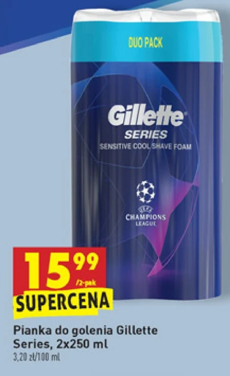 Pianka do golenia Gilette Series, pojemność 2 x 250 ml.