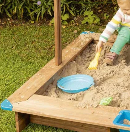 Piaskownica z dachem dla dzieci.